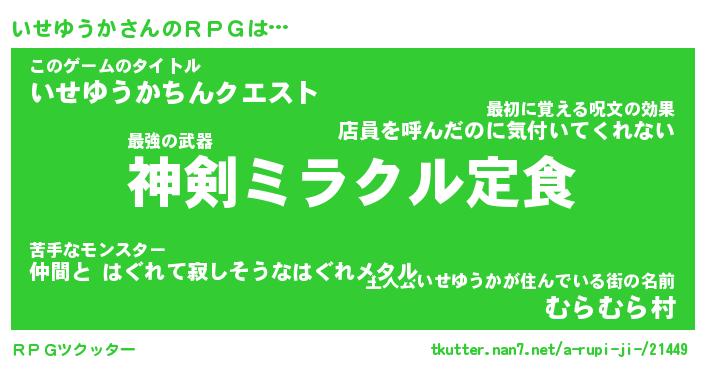 | ヒーロー風カッコイイあだ名 | 『スーパーイセユウカ』『銀牙騎士イセ』 |