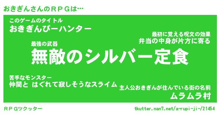 | 男性向けラノベタイトル風あだ名 | 『オキギンアートオンライン』 |