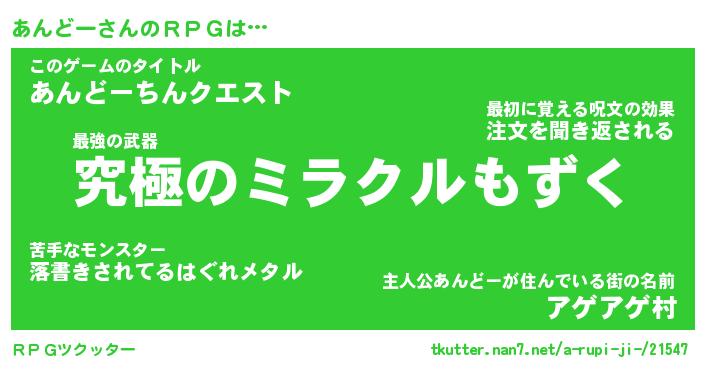 | 意味不明あだ名 | 『ペロリンあんどー』『永久保存あんどー』 |