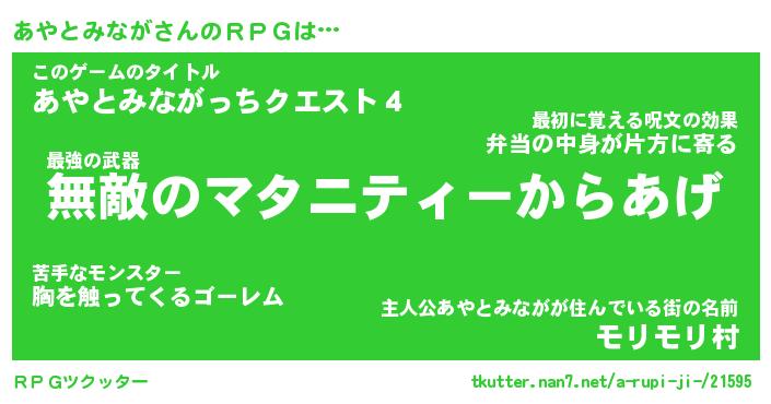| 伝説のあだ名 | 『封印されしスナイパーあやとみなが』 |