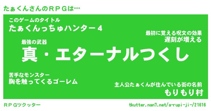 | ヒーロー風カッコイイあだ名 | 『スーパータァクン』『幻影騎士タァ』 |