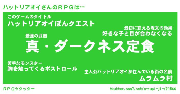 | 胡散臭い通販商品みたいなあだ名 | 『億万長者になれる水晶球…その名も「ハットリアオイ」』 |