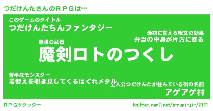 | 伝説のあだ名 | 『伝説の竜騎士つだけんた』 |