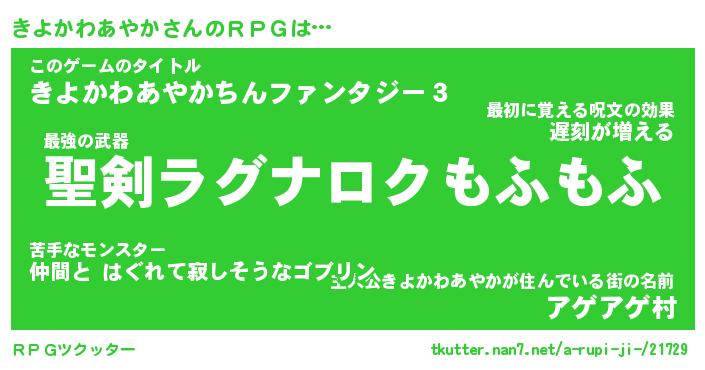 | 胡散臭い通販商品みたいなあだ名 | 『必ず成功するブレスレット…その名も「きよかわあやか」』 |