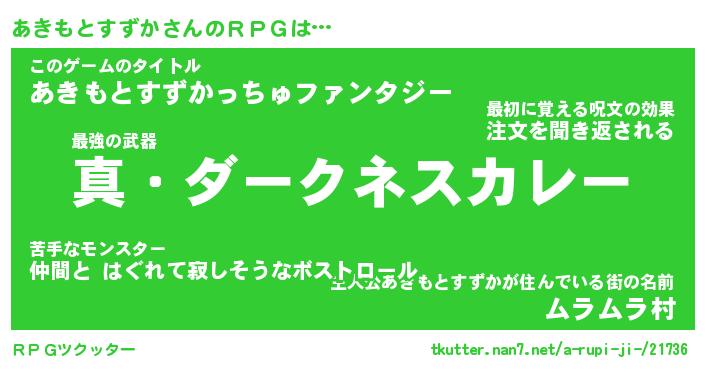 | 男性向けラノベタイトル風あだ名 | 『アキモトスズカアートオンライン』 |