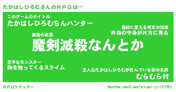 | 胡散臭い通販商品みたいなあだ名 | 『必ず成功する霊験あらたかなお札…その名も「たかはしひろむ」』 |