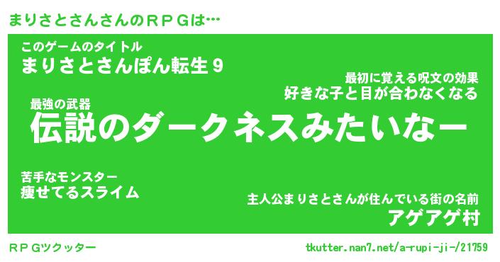 | 男性向けラノベタイトル風あだ名 | 『まりさとさんの憂鬱』 |
