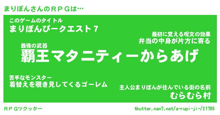 | 伝説のあだ名 | 『封印されしスナイパーまりぼん』 |