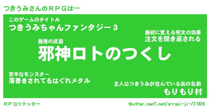 | ファンタジー風あだ名 | 『ツキフェル』『エターナルツキウミー』 |