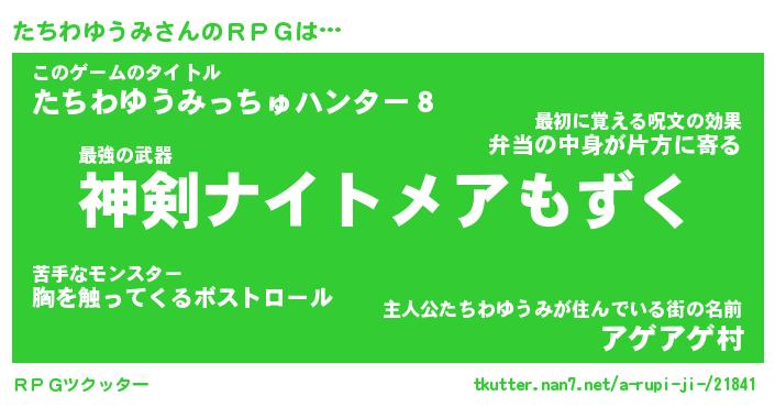 | 料理風あだ名 | 『節約★たちわゆうみと油揚げの玉子丼』 |