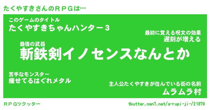 | ファンタジー風あだ名 | 『タクフェル』『エターナルタクヤスキー』 |