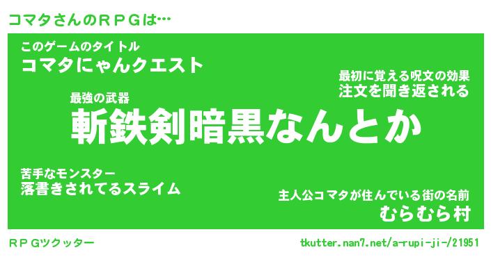 | ファンタジー風あだ名 | 『コマフェル』『エターナルコマター』 |
