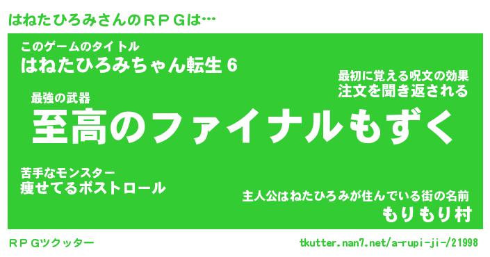 | 伝説のあだ名 | 『不死鳥の竜騎士はねたひろみ』 |