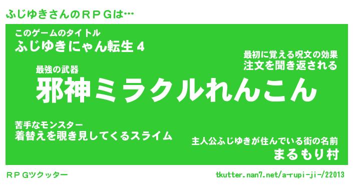 | 男性向けラノベタイトル風あだ名 | 『フジユキアートオンライン』 |