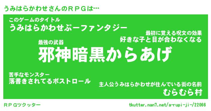 | 胡散臭い通販商品みたいなあだ名 | 『億万長者になれる水晶球…その名も「うみはらかわせ」』 |