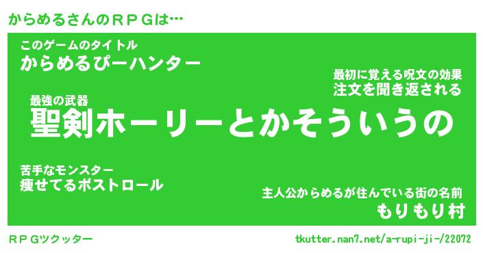 | 男性向けラノベタイトル風あだ名 | 『からめるの憂鬱』 |