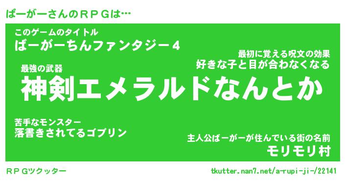| ファンタジー風あだ名 | 『バーフェル』『エターナルバーガーー』 |