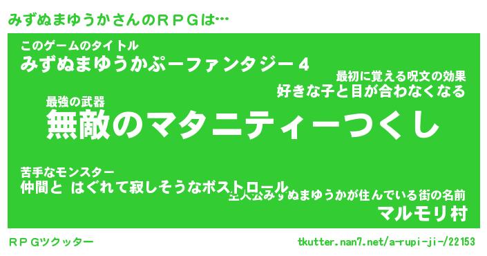 | 胡散臭い通販商品みたいなあだ名 | 『モテモテ間違いなし霊験あらたかなお札…その名も「みずぬまゆうか」』 |
