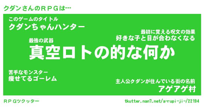 | ファンタジー風あだ名 | 『クダフェル』『エターナルクダンー』 |