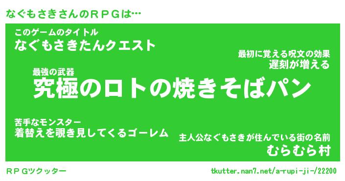 | 男性向けラノベタイトル風あだ名 | 『ナグモサキアートオンライン』 |