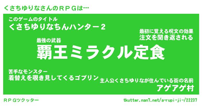 | 男性向けラノベタイトル風あだ名 | 『クサチユリナアートオンライン』 |