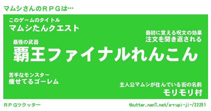 | 男性向けラノベタイトル風あだ名 | 『マムシアートオンライン』 |