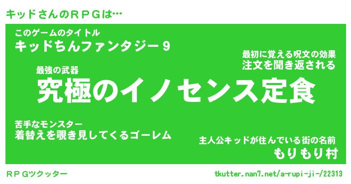 | 男性向けラノベタイトル風あだ名 | 『キッドアートオンライン』 |