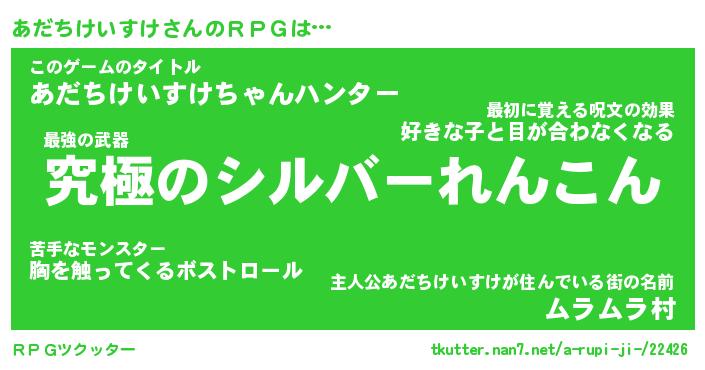 | 男性向けラノベタイトル風あだ名 | 『アダチケイスケアートオンライン』 |