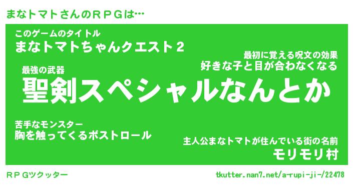 | 伝説のあだ名 | 『伝説の竜騎士まなトマト』 |