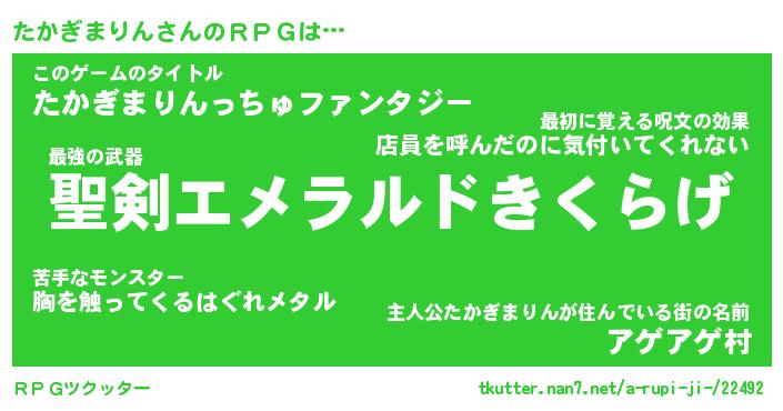 | 胡散臭い通販商品みたいなあだ名 | 『必ず成功する霊験あらたかなお札…その名も「たかぎまりん」』 |