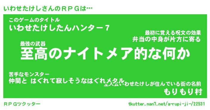 | 胡散臭い通販商品みたいなあだ名 | 『モテモテ間違いなし霊験あらたかなお札…その名も「いわせたけし」』 |