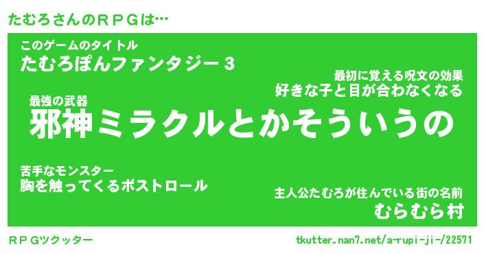 | ファンタジー風あだ名 | 『タムフェル』『エターナルタムロー』 |