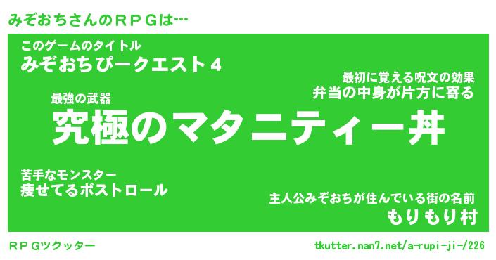 | ピコ太郎風あだ名 | 『ミコ八郎』『ピミ四郎』『ミゾ四郎』 |