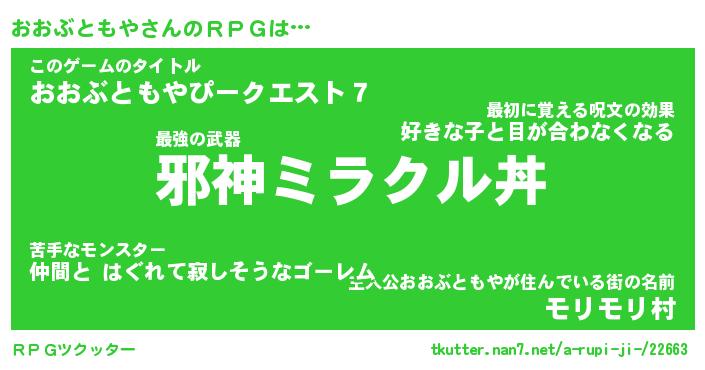 | 男性向けラノベタイトル風あだ名 | 『オオブトモヤアートオンライン』 |