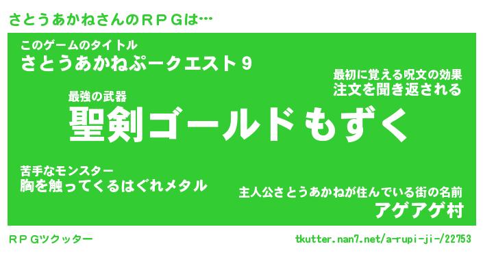 | 伝説のあだ名 | 『伝説のスナイパーさとうあかね』 |