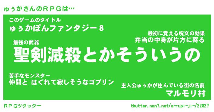 | 胡散臭い通販商品みたいなあだ名 | 『必ず成功する霊験あらたかなお札…その名も「ゅぅか」』 |