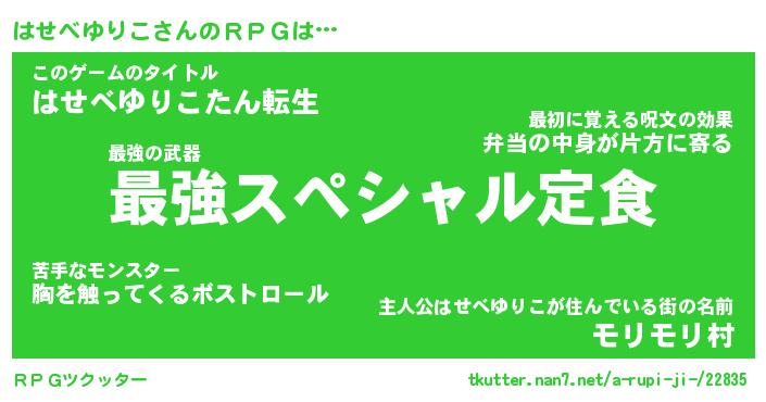 | 男性向けラノベタイトル風あだ名 | 『ハセベユリコアートオンライン』 |