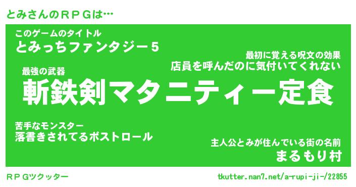 | ファンタジー風あだ名 | 『トミフェル』『エターナルトミー』 |
