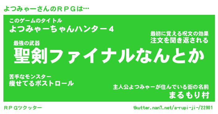 | ヒーロー風カッコイイあだ名 | 『スーパーヨツミャー』『幻影騎士ヨツ』 |