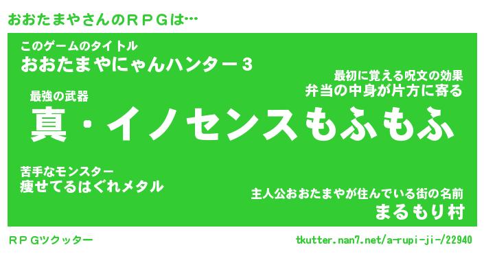 | 男性向けラノベタイトル風あだ名 | 『オオタマヤアートオンライン』 |