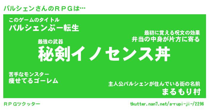 | 胡散臭い通販商品みたいなあだ名 | 『必ず成功する霊験あらたかなお札…その名も「パルシェン」』 |