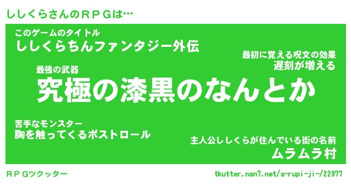 | 男性向けラノベタイトル風あだ名 | 『ししくらの憂鬱』 |