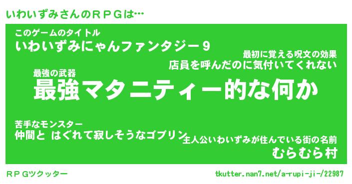| ファンタジー風あだ名 | 『イワフェル』『エターナルイワイズミー』 |