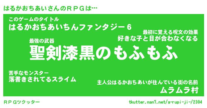 | 胡散臭い通販商品みたいなあだ名 | 『必ず成功する霊験あらたかなお札…その名も「はるかおちあい」』 |