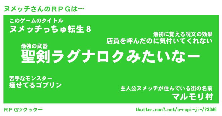 | 男性向けラノベタイトル風あだ名 | 『ヌメッチの憂鬱』 |