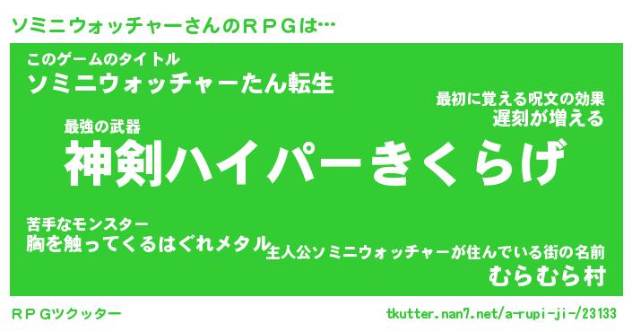 | ヒーロー風カッコイイあだ名 | 『スーパーソミニウォッチャー』 |