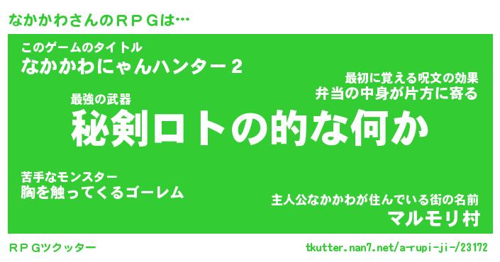 | 男性向けラノベタイトル風あだ名 | 『なかかわの憂鬱』 |