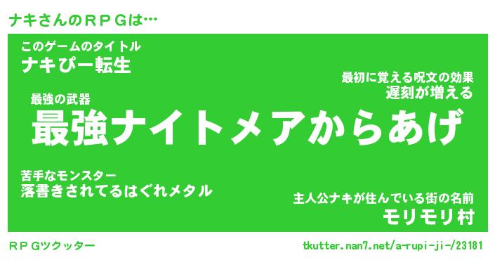 | 男性向けラノベタイトル風あだ名 | 『ナキアートオンライン』 |