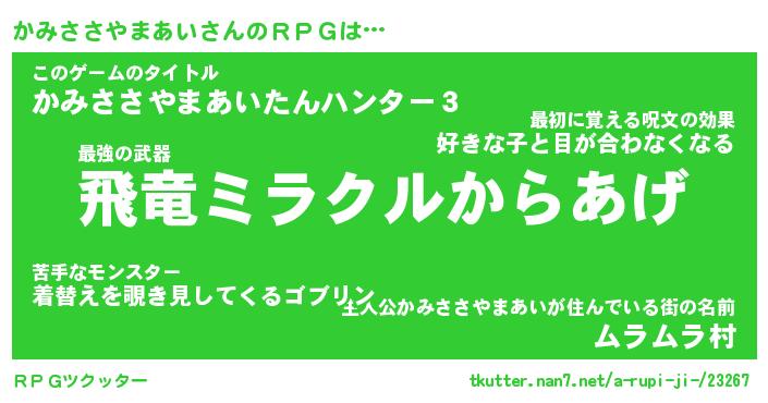 | 胡散臭い通販商品みたいなあだ名 | 『億万長者になれるブレスレット…その名も「かみささやまあい」』 |