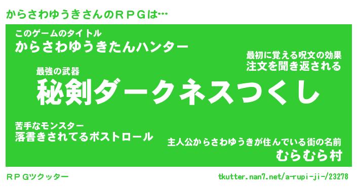| ヒーロー風カッコイイあだ名 | 『スーパーカラサワユウキ』 |